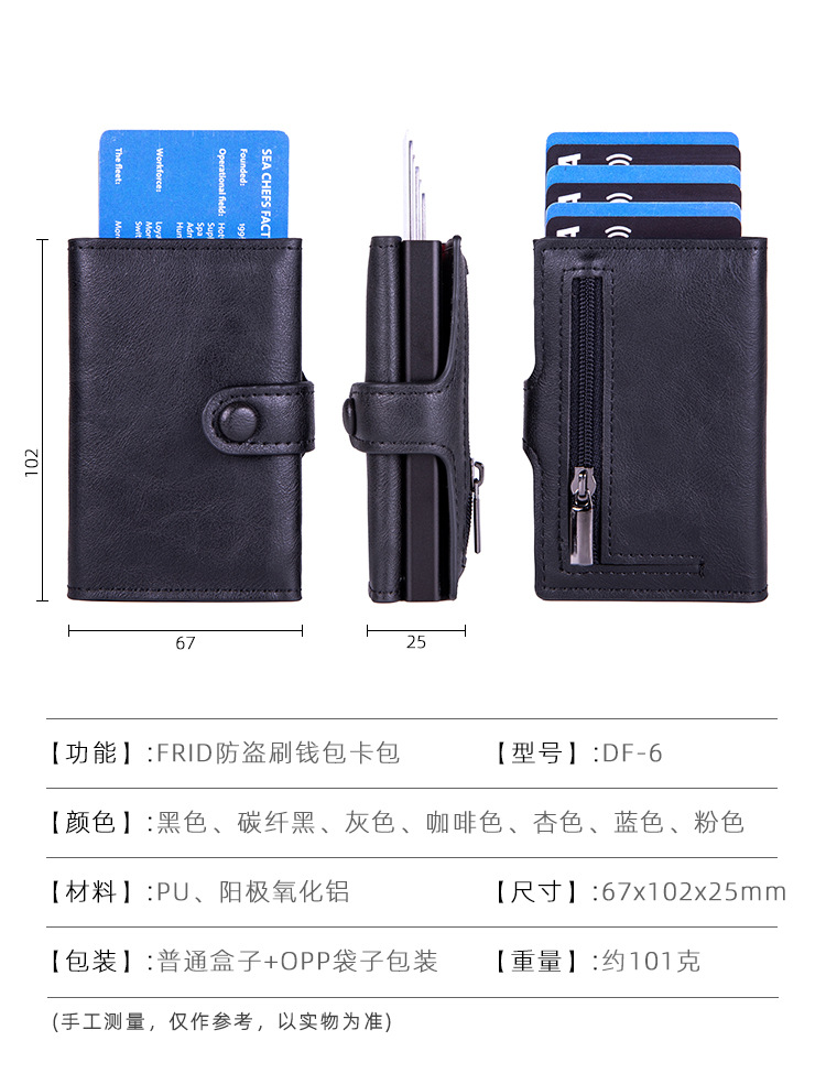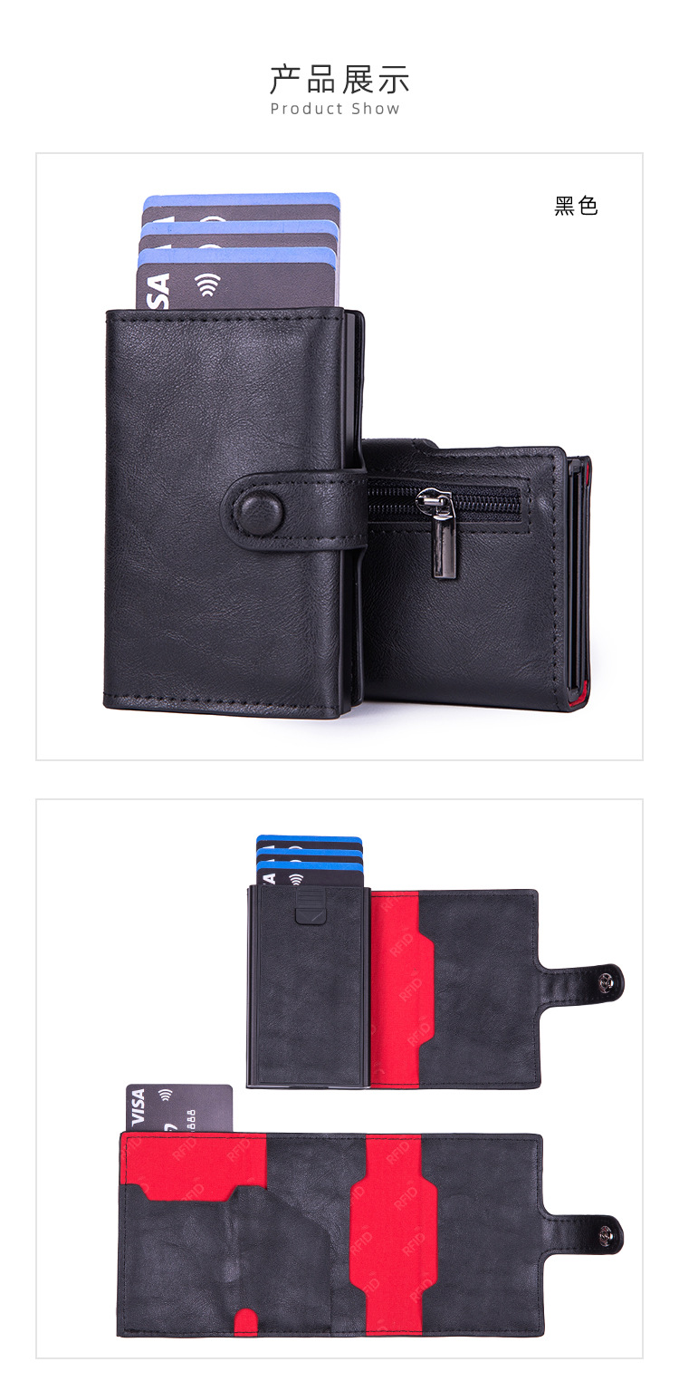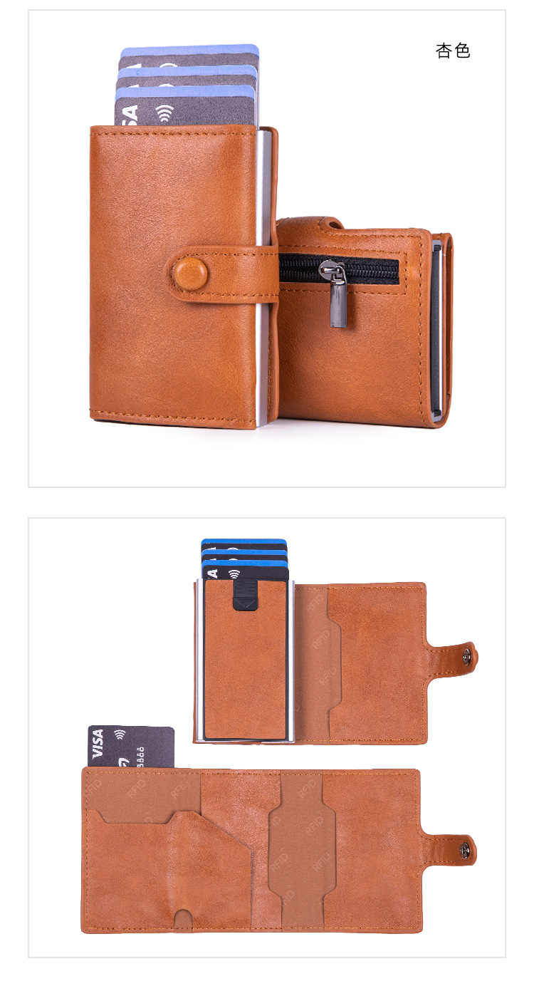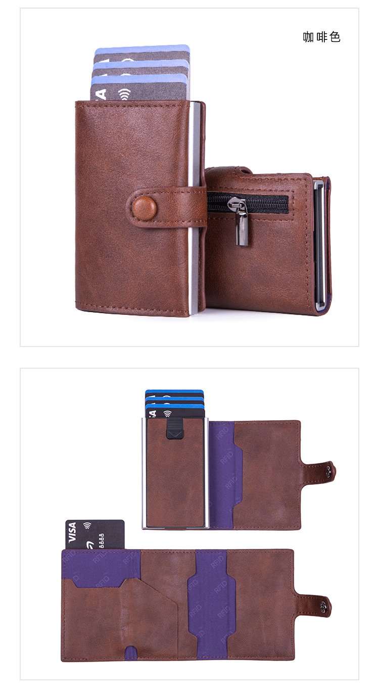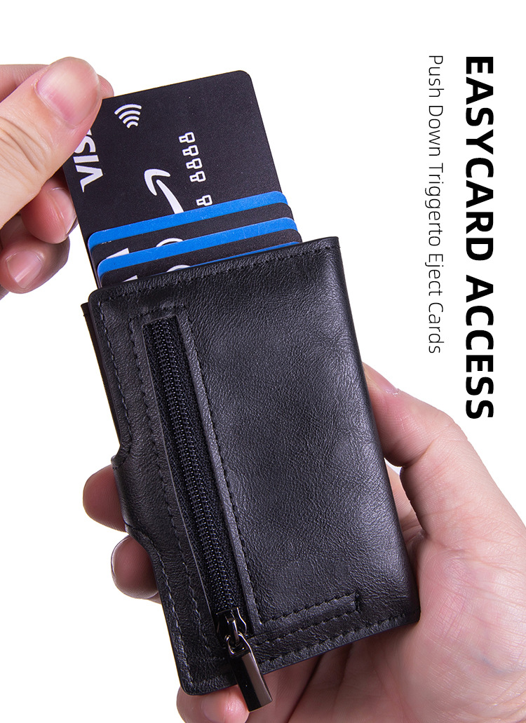 New Metal Automatic Pop-Up Card Case, Men's And Women's Card Holder, Anti-Demagnetization Card Box, Wallet And Coin Purse Zipper